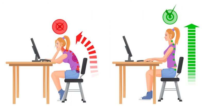 Обратите внимание, как вы и ваши коллеги сидят перед мониторами или просматривают новости в айфонах и планшетах. Голова наклонена, шея напряжена и находится в таком положении долго. Некоторые имеют привычку прижимать телефон во время разговора к уху плечом – еще одна поза для шеи и спины, которая со временем приводит к проблемам со здоровьем.