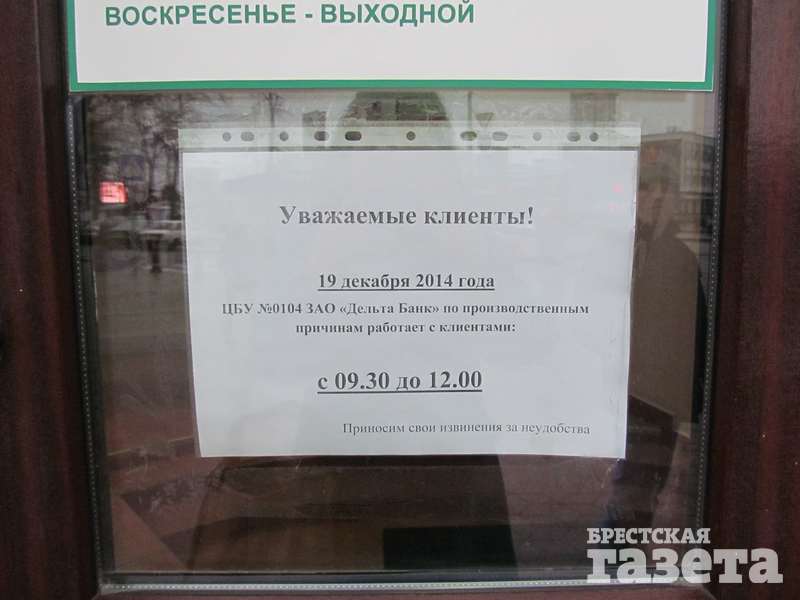 Единственным банком, где на вопрос «Есть ли валюта?» ответили положительно, был один из банков на бульваре Космонавтов. То, что там ситуация отличается от увиденного нами в других пунктах, заметно еще с улицы, куда вылез «хвост» очереди. Благо сегодня в Бресте тепло, хотя и немного сыро. Несравнимо больше людей внутри — не протолкнуться. Консультант объяснила, что валюта банком продается, но никто не гарантирует, что ее хватит на всех.