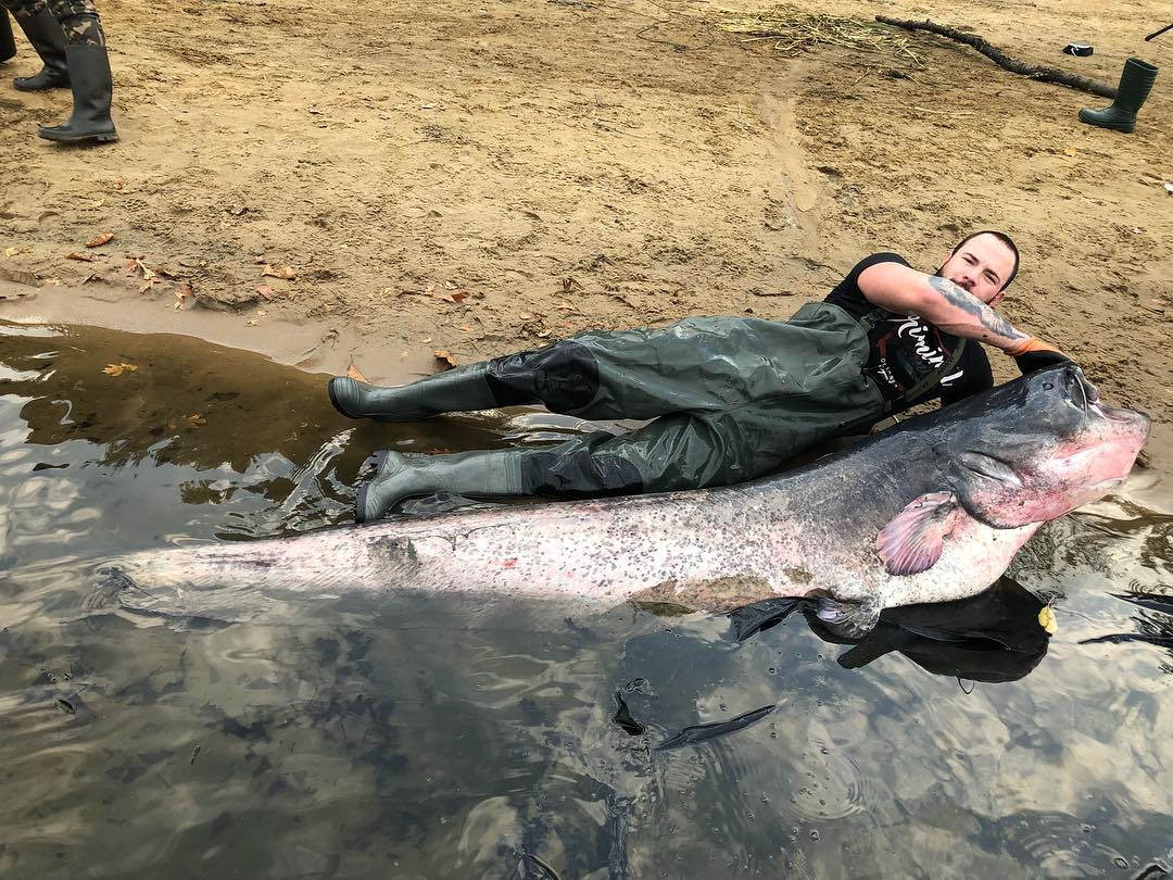 Житель польского города Тыхы Шимон Нововейский выловил сома рекордного размера.