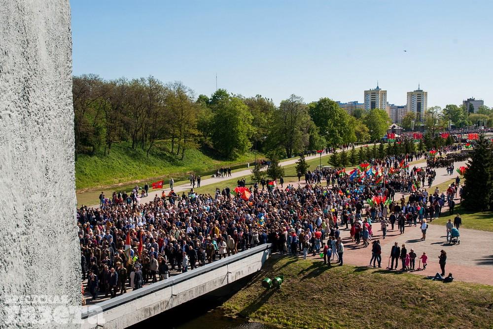 Руководство области и города, ветераны, представители общественных организаций, трудовых коллективов, молодежь 9 Мая традиционно организованной колонной проследовали к Брестской крепости. Вместе с брестчанами в мемориальный комплекс пришли гости города. К Вечному огню и плитам некрополя возложили цветы, память павших на войне почтили минутой молчания.