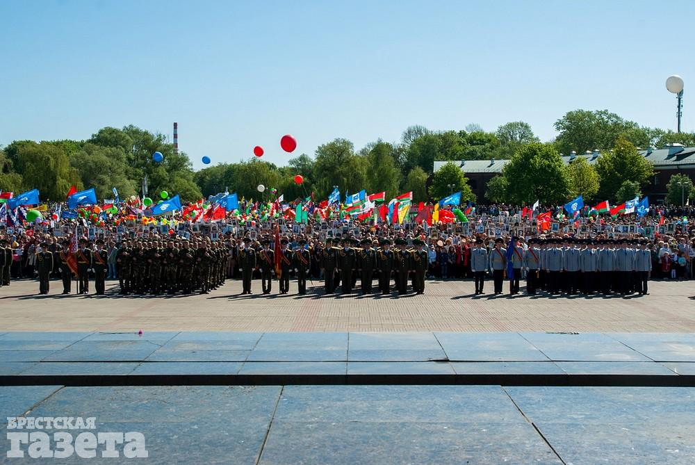 Митинг в Брестской крепости завершился торжественным маршем. По площади Церемониалов прошли воины Брестского гарнизона, пограничники, сотрудники Следственного комитета, МЧС, учащиеся кадетских классов, участники акции «Беларусь помнит!» с портретами своих предков — участников войны. По информации БелТА, в праздничном шествии в крепость приняли участие около 9 тыс. человек. Всего в митинге на площади Церемониалов приняли участие около 40 тысяч человек, сообщает sb.by.