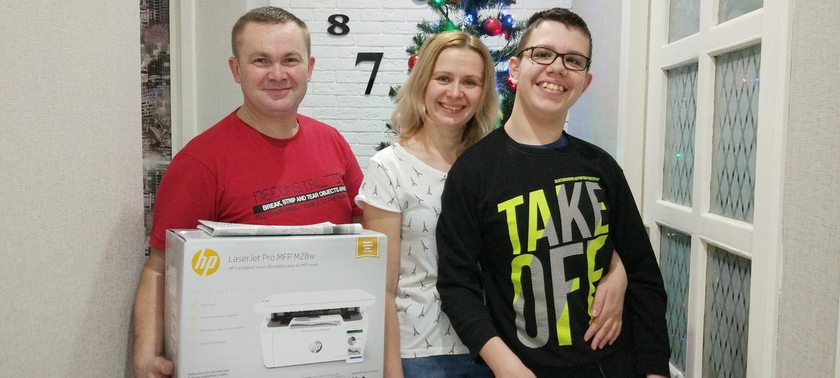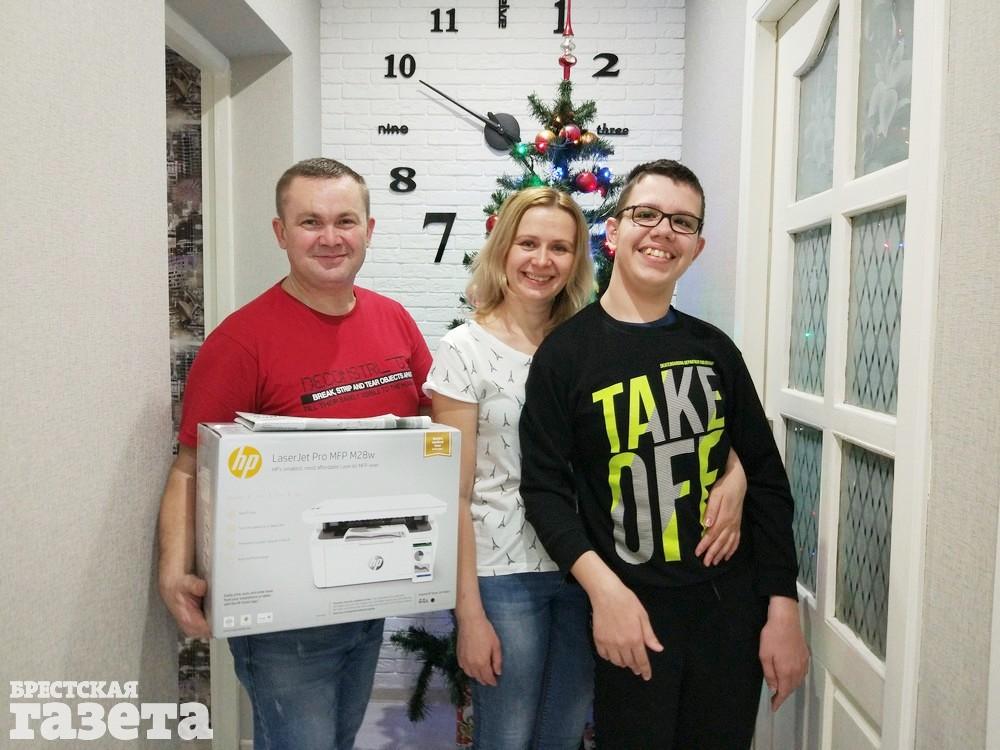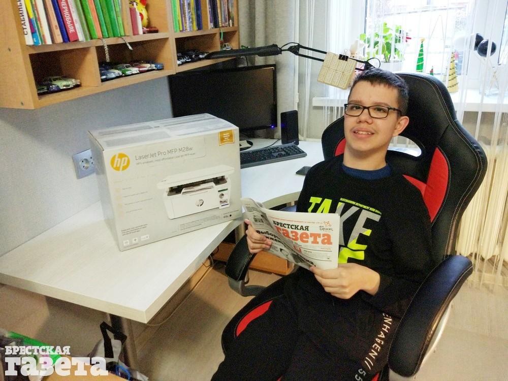 Благодаря отзывчивости наших читателей и пользователей соцсетей эту мечту удалось осуществить – сумма, необходимая для покупки принтера, была собрана аккурат под Новый год. А перед Рождеством, 6 января, подарок был доставлен адресату. Никите его вручили главный редактор «БГ» Виктор Марчук и заместитель директора Татьяна Пискур.