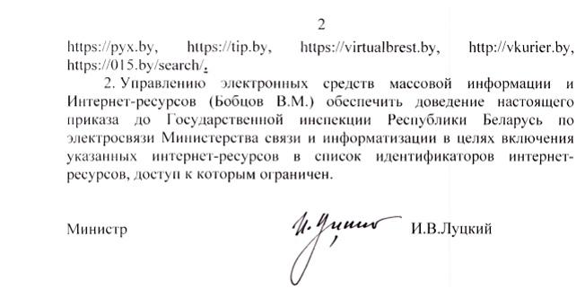 Читайте также: «На основании решения Мининформа». В Беларуси ограничили доступ к нескольким десяткам сайтов (список)