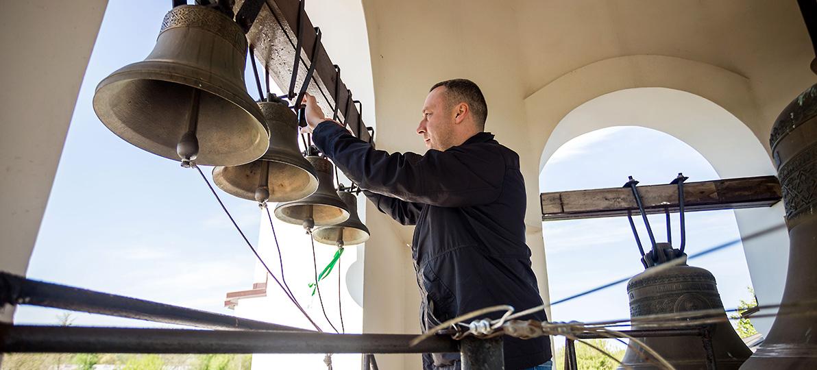 Иван Чайчиц на колокольне храма. Фото: