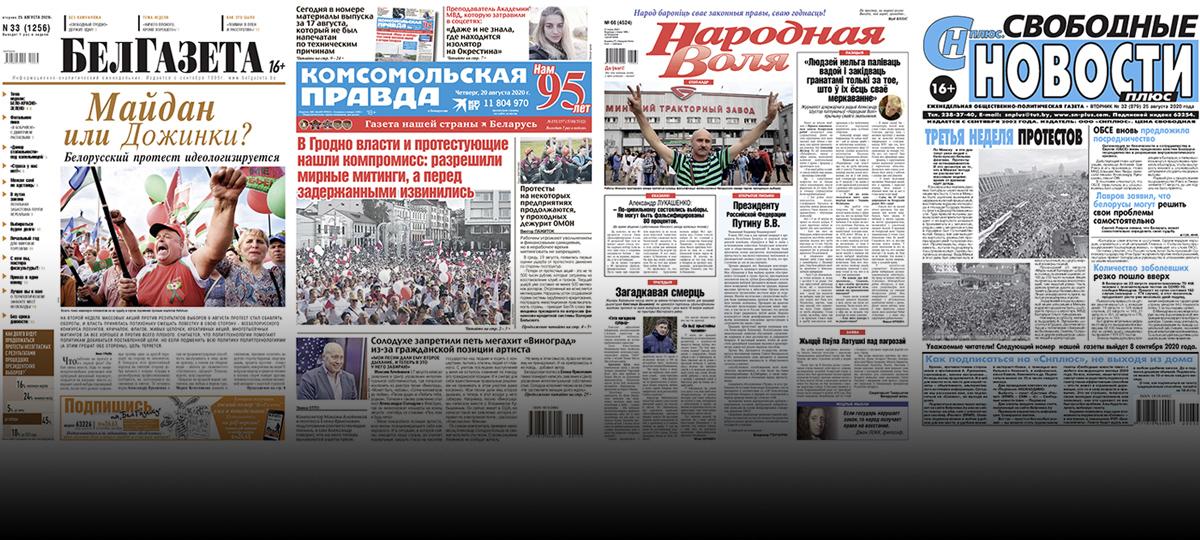 «Комсомольская правда в Беларуси», «Народная воля», «Свободные новости плюс» и «БелГазета» столкнулись с препятствиями со стороны властей и не могут свободно печатать свои тиражи и распространять их в Беларуси, сообщает Пресс-клуб Беларуси.