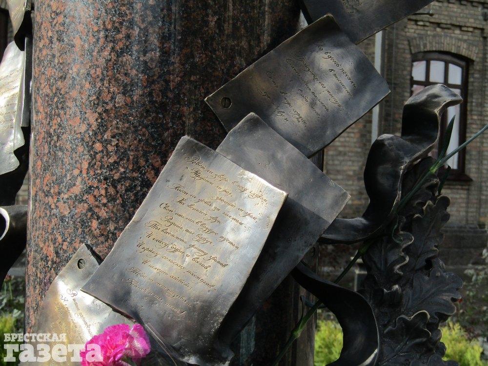 Идея появления этого памятника, который торжественно открыли 11 октября, родилась в посольстве Российской Федерации в Республике Беларусь, рассказал во время торжественной церемонии заместитель министра культуры РФ Николай Овсиенко. Это подарок 1000-летнему Бресту от российского военно-исторического общества.