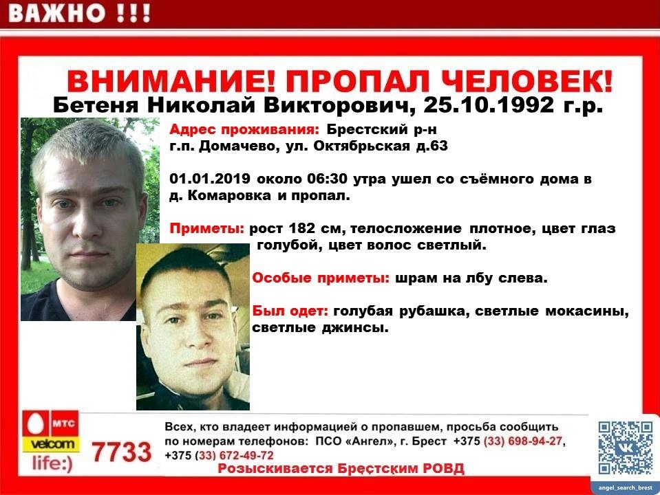 В районе деревни Комаровка Брестского района продолжаются поиски пропавшего в новогоднюю ночь Николая Бетени. Очередной день не принес результата – молодой мужчина до сих пор не найден.