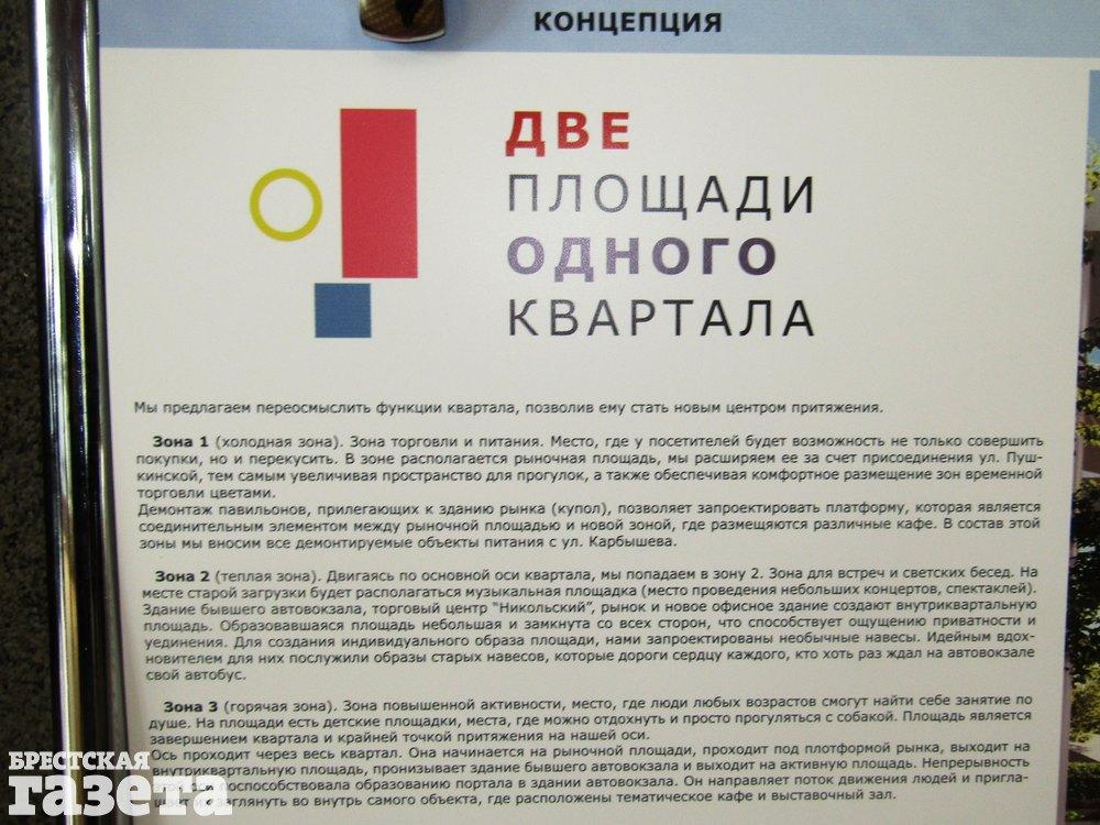Квартал в центре Бреста, ограниченный улицами Мицкевича, Карбышева, Куйбышева и Пушкинской, ждет реконструкция. Что конкретно там будет – пока вопрос. Для определения дальнейшей судьбы двух площадей одного квартала – рыночной и вокзальной – был объявлен конкурс архитектурных проектов. Днем 3 октября в горисполкоме состоялась их презентация.