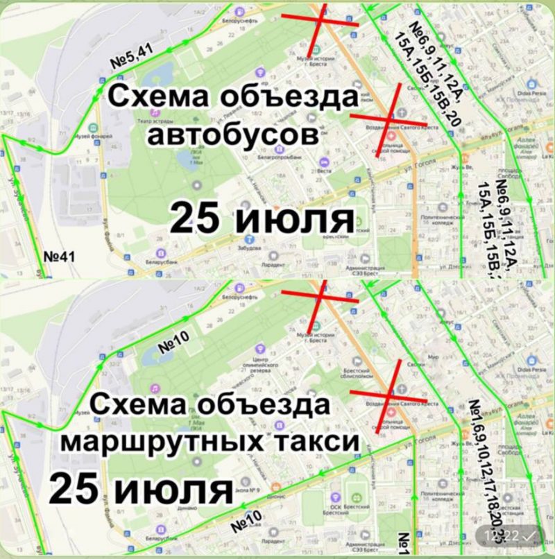 Общественный транспорт будет следовать в объезд. Брестский горисполком просит учитывать данные изменения при построении своих маршрутов.