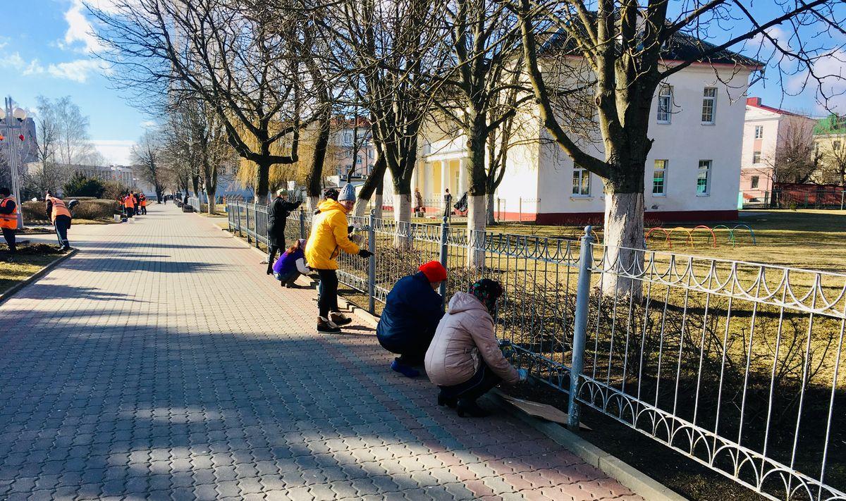 К наведению порядка подключились предприятия. На здании «Белтелекома» обновили фирменную эмблему, на территории завода «Торгмаш» покрасили столбы, заменили выцветшие за зиму билборды. Представители службы озеленения городского ЖКХ приводят в порядок городские клумбы и газоны.