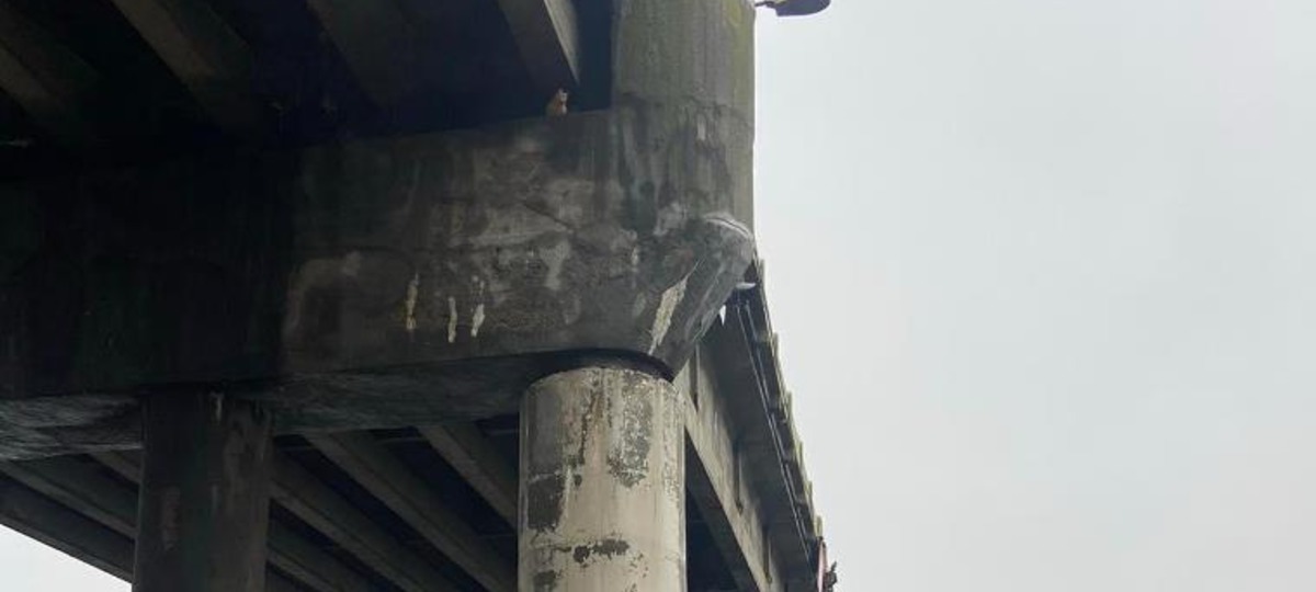 Звонившие рассказали, что кот находится на опоре под мостом и не может спуститься вниз.
