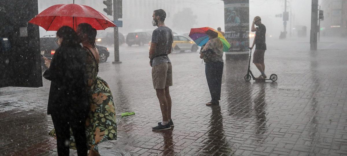 Около 18.40 начался сильный ливень с градом. Люди достали зонтики, но продолжили стоять. Через час, когда дождь, град, сильный ветер стали стихать, людская очередь выстроилась от филармонии до площади Победы.