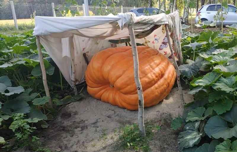 Огромные растения на дачном участке под Брестом выращивает беларуский биолог Виктор Демешко. Овощ-гигант весит более 400 килограмм. Вся видимая на фото и видео ботва питает только данный плод. То есть одна тыква занимает около полутора соток земли. Видео овоща публикует YouTube-канал «Тыква. Растим большие тыквы».