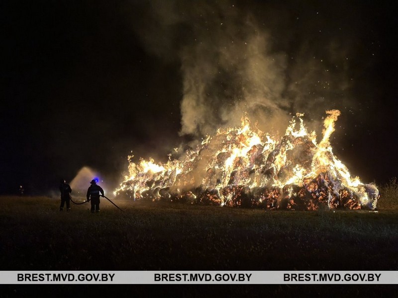 В начале сентября в Кобринском районе подожгли скирды соломы, принадлежащей сельхозпредприятию района. Ущерб составил 1 920 рублей. На днях произошел аналогичный инцидент. Ночью кто-то поджег скирду соломы на поле, причинив предприятию ущерб на общую сумму более 7 900 рублей. Об этом сообщает УВД Брестского облисполкома.
