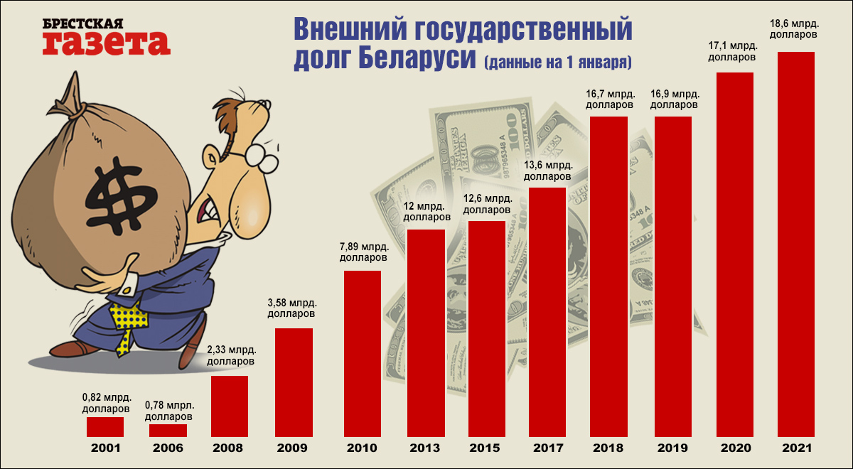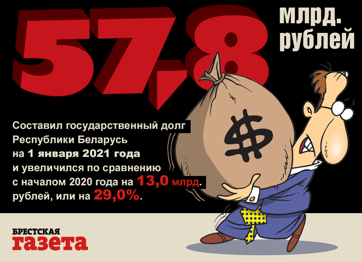 Государства тоже берут в долг. И, в принципе, должны бы придерживаться той же логики благоразумия. То есть, адекватно оценивать свои возможности и жить, что называется, по средствам. Но так бывает не всегда. Мы об этом знаем не понаслышке. Только за прошлый год государственный долг Беларуси вырос на 13,0 млрд. рублей, или на 29,0%.