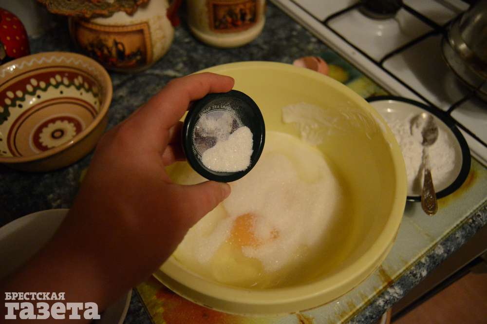Готовим: Изюм предварительно замочите в горячей воде. В миску выложите творог и разбейте в него яйца. Затем введите туда сахар, крахмал и ванилин. В последнюю очередь добавьте изюм. Взбейте творожное тесто блендером или миксером до однородности. Вылейте в силиконовую форму для выпечки.
