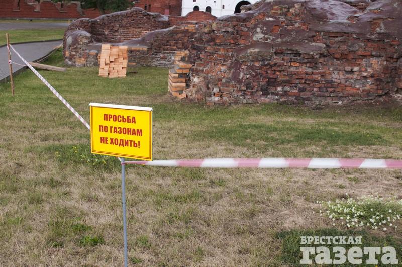 По словам Григория Бысюка, в то, что кирпич на руинах разрушается, внесли лепту и посетители крепости. «Ведь многие, несмотря на наши таблички «Просьба по руинам не ходить», которые стоят почти у каждого объекта, взбираются на них. И дети, и взрослые. Потому что надо сфотографироваться, потому что надо сверху посмотреть на какой-то объект», — отметил директор мемориального комплекса. Консервационный слой от таких действий, к сожалению, рушится.
