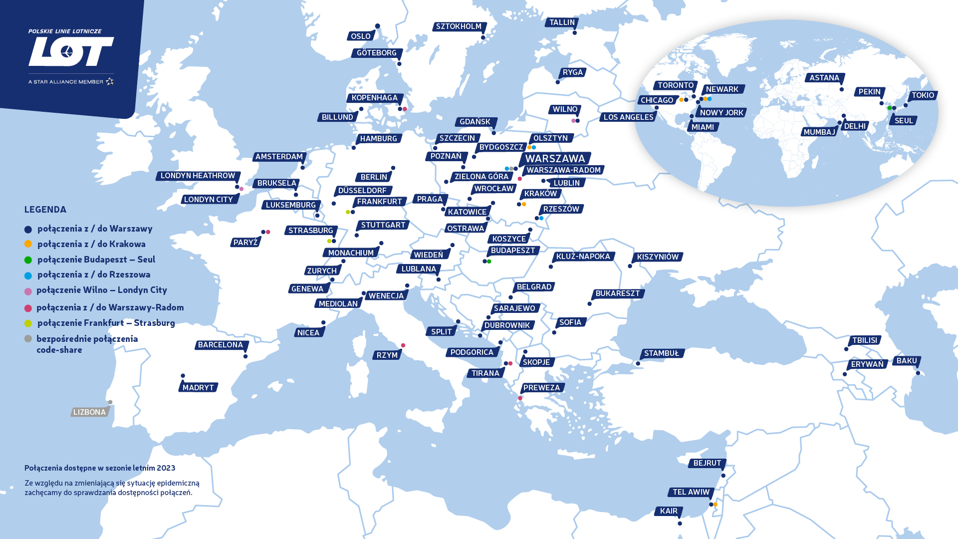 Для сравнения, предлагаем взглянуть, например, на карту полетов польской авиакомпании LOT. Как говорится, комментарии излишни.