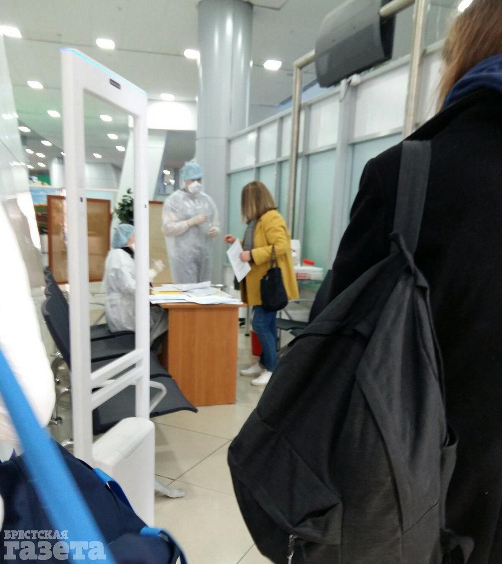 По прилету в Национальный аэропорт «Минск» пассажиров рейса на автобусике подвезли к терминалу. Все прошли через тепловизор. По словам Татьяны, пограничники давали пассажирам анкеты. Россиян, украинцев, которые летели транзитом, отослали покупать страховки: почему-то все были без них.