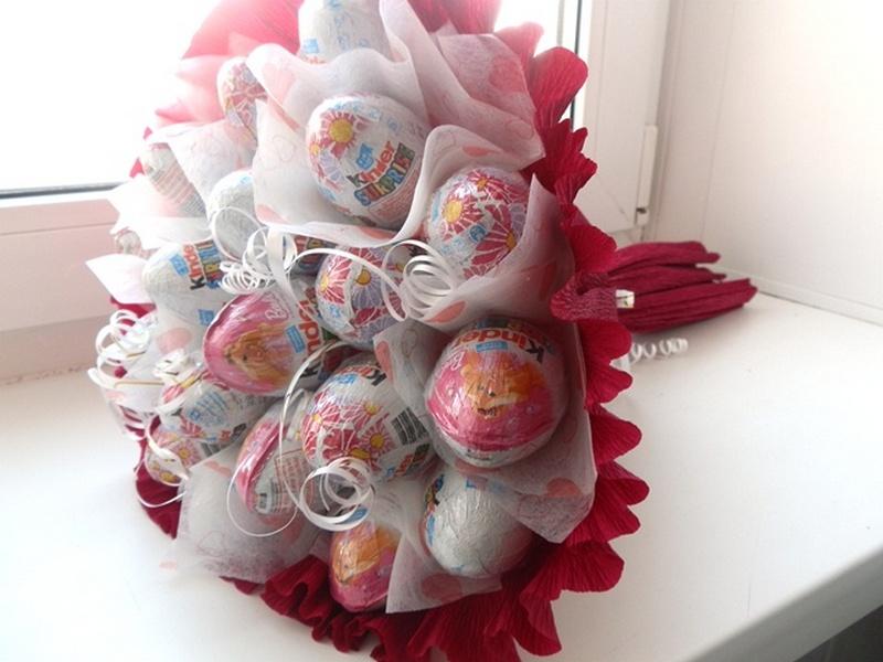 Цветы — это банально, да и грустно смотреть, как они вянут. Другое дело — букет из «Киндер-сюрпризов» или Raffaello. Мало того, что это очень вкусно, так еще и эффектно. Любимая будет в восторге, гарантировано!