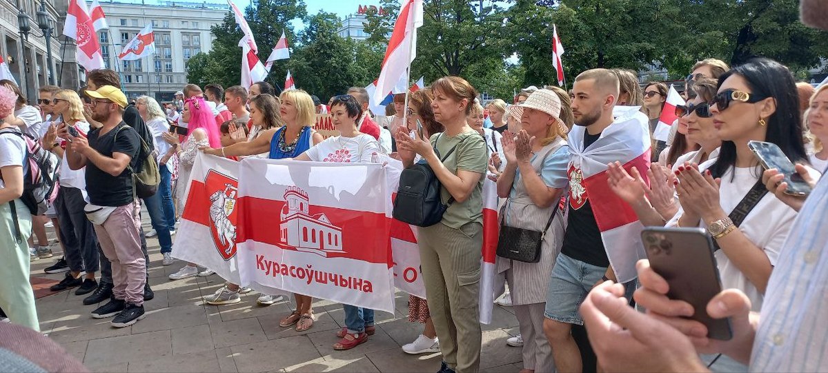 Сегодня в центре Варшавы прошел «Марш годнасці», приуроченный ко второй годовщине протестов после фальсификации президентских выборов в Беларуси 9 августа 2020 года. Беларусы собрались на Площади Конституции и маршем прошлись до Замковой площади.