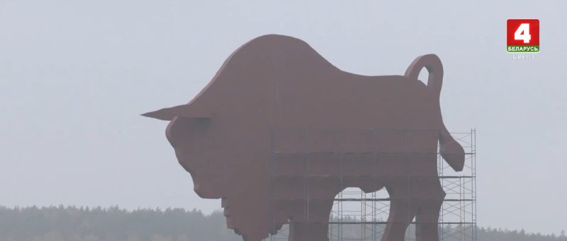Гигантский зубр стоит на 250-м км трассы М1 на въезде в Брестскую область почти 20 лет. Скульптуру изготовили в 2003 году на Пинском судостроительно-судоремонтном заводе. Высота — 30 м, вес — 70 т. ТРК «Брест» называет другие цифры: высота — порядка 25 метров, длина — 27 метров, вес — около 60 тонн.