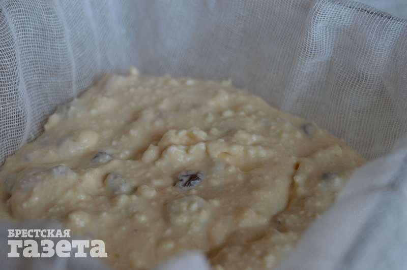 Сверху также прикройте марлей, хорошо примните. Поставьте пасху в прохладное место минимум на 6 часов. Чтобы творог лучше утрамбовался, сверху положите груз.