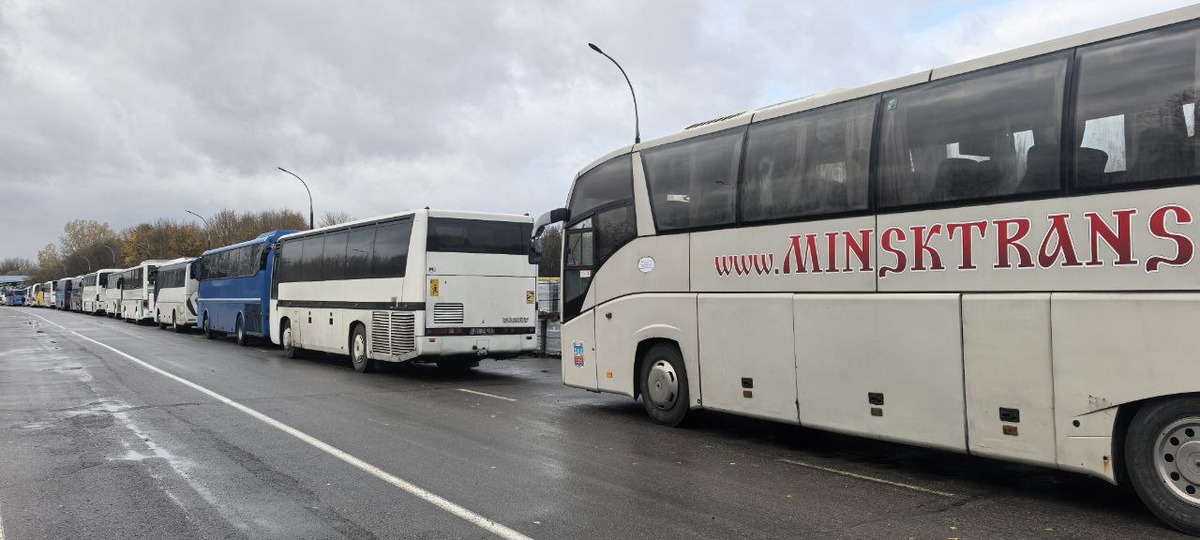 Автобусная очередь перед пунктом «Брест» непрерывно растет с 14.00 29 октября. Примерно в это время стало известно, что Литва до 30 ноября закрыла границу с Беларусью. А некоторые автобусные перевозчики сообщили, что перенаправляют свои рейсы в Польшу. Поэтому 93 автобуса в очереди днем 30 октября — не сюрприз. Вероятнее всего, очередь продолжит расти.