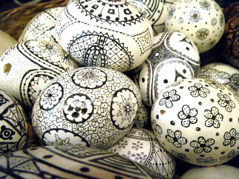 Этот способ относительно традиционный. Вам нужно найти трафарет, приложить к яйцу и покрасить его природным или пищевым красителем. Главное – полет фантазии!