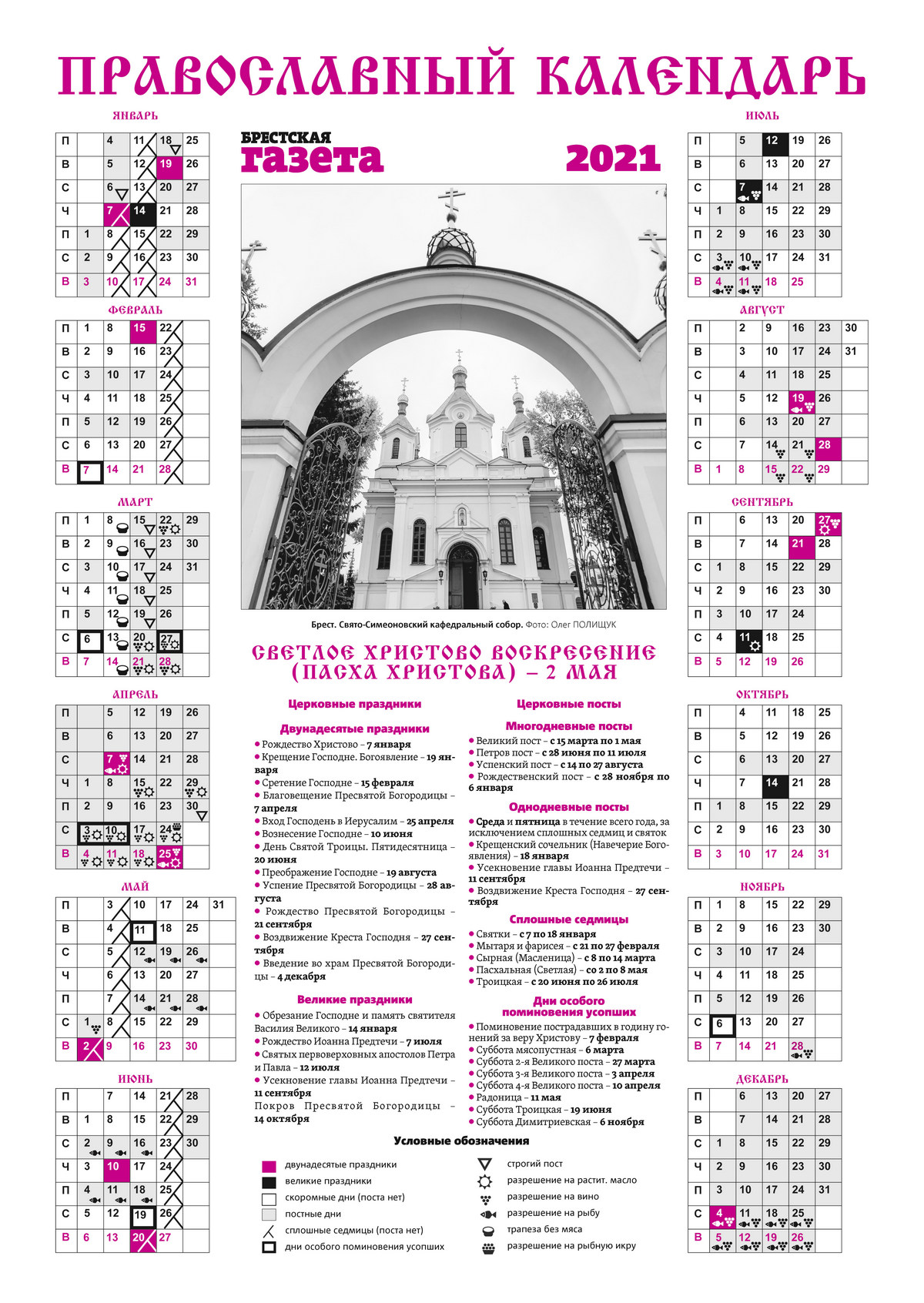 Этот календарь вы можете сохранить себе и даже распечатать. Бумажную версию найдете в номере «Брестской газеты» за 31 декабря 2020 года.