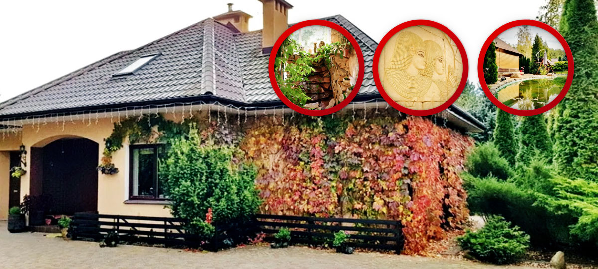 Мансардный жилой дом 2007 года постройки расположен в северо-восточной части Бреста – в микрорайоне Задворцы. Судя по фото с птичьего полета – место живописное. Много зелени, большая территория и декоративный пруд размером чуть ли не с озеро.