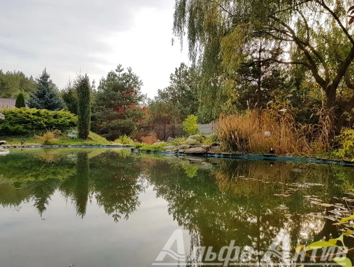 В доме все коммуникации: электричество, отопление – газовое, водоснабжение – центральное, канализация – автономная и центральная по улице. Благоустроенный приусадебный участок площадью 25 соток представляет собой хвойный ландшафт с большим декоративным прудом. Также на территории есть глубокий погреб, бар и беседка.