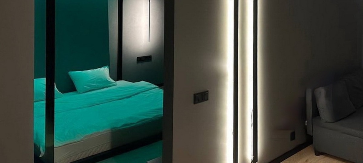 Общая площадь квартиры составляет 48,1 кв. м, а жилая — 34,3 кв. м. Дом, в котором находится объект продажи, расположен в глубине двора. За свою оригинальную светящуюся квартиру хозяин выставил цену в $84 500.