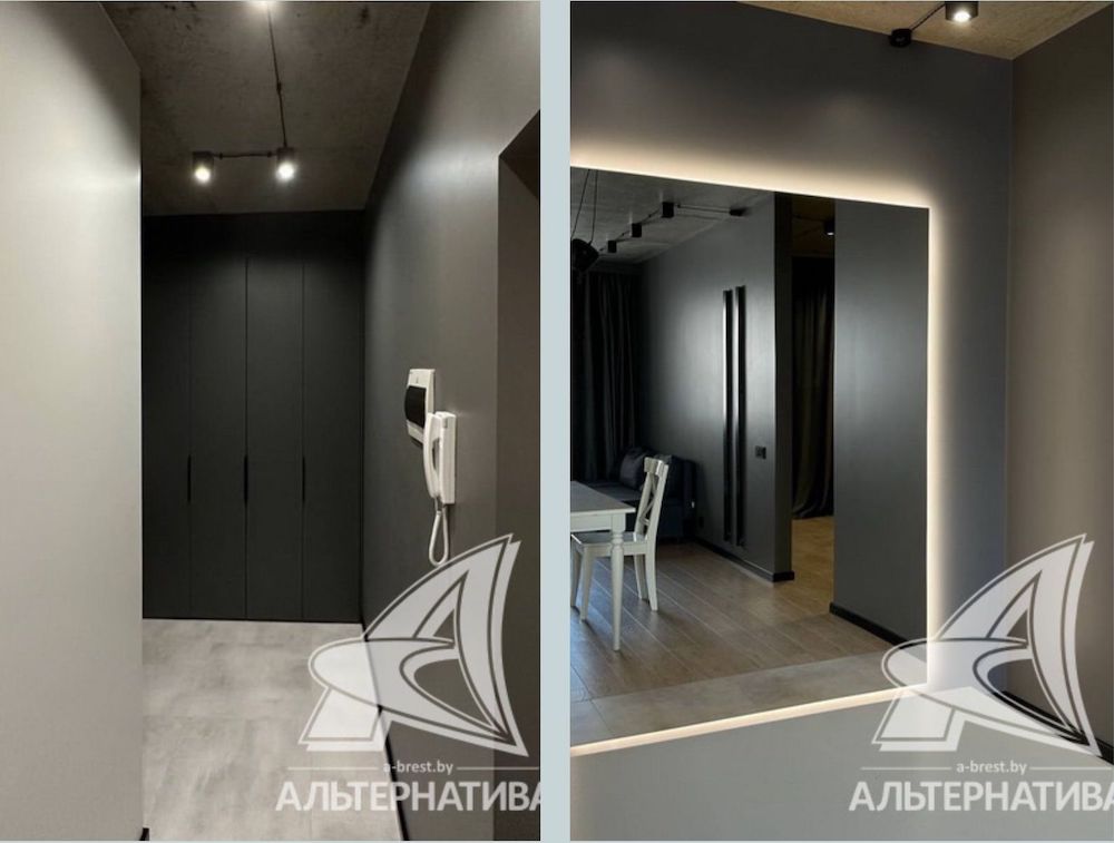 Двухкомнатная квартира с дизайнерским ремонтом находится в Бресте на улице Кирова. Стилистика помещения выполнена в уже знакомом нашим читателям стиле «лофт» — нарочито незаделанные швы на потолке, серо-черно-белая гамма в интерьере комнат некоторая брутальность.