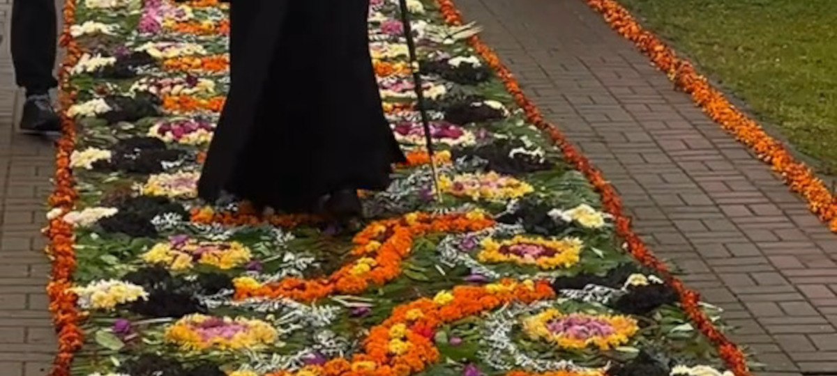 Люди в комментариях думали и гадали — нормально ли ходить по ковру из живых цветов, тем более епископу, «он же монах, и роскошь ему должна быть чужда».