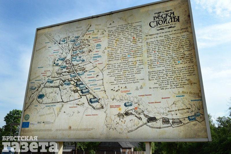 Сам проект «Вясковы рэнесанс» стартовал в 2014-м. В его рамках в деревне Стойлы появилась уникальная карта. На ней изображен план деревни, где одним цветом обозначены ныне существующие дома, другим — исчезнувшие. Каждый подписан фамилией жителей. Рисовала ее известная брестская художница Мария Редько. С обратной стороны огромной карты — коллаж из фотографий жителей деревни.