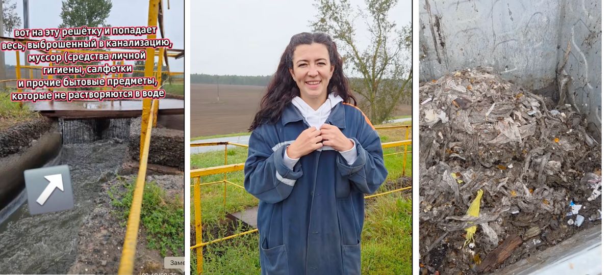 Жлобинский водоканал наглядно продемонстрировал, чем заканчивается привычка смывать все подряд в канализацию. Сотрудница предприятия показала, как выглядит приемная камера канализации города — место, куда стекают стоки от 76 тысяч жителей. На видео видны железные решетки, забитые влажными салфетками, подгузниками, прокладками и тряпками.