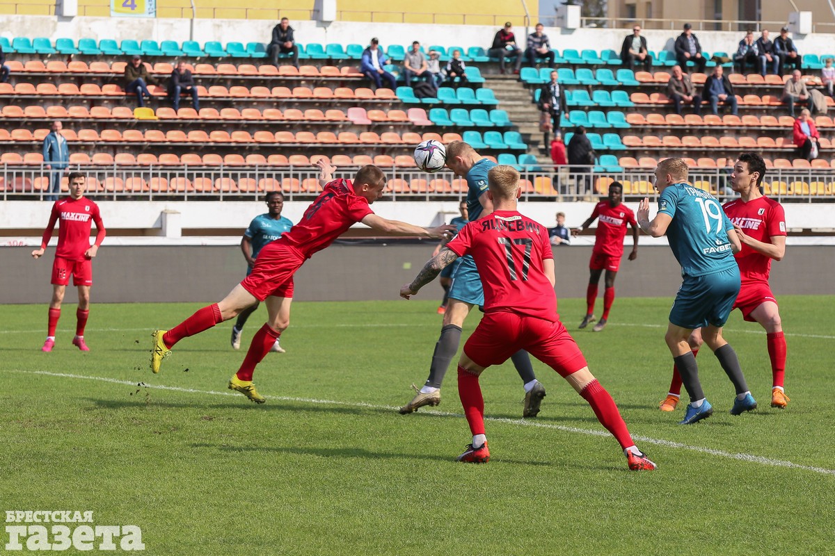 Брестчане открыли счет уже на первой минуте, забив один из самых быстрых голов этого чемпионата. Денис Лаптев ворвался в штрафную и пробил в голкипера, но спустя несколько секунд в доигровке эпизода головой переправил мяч в сетку.